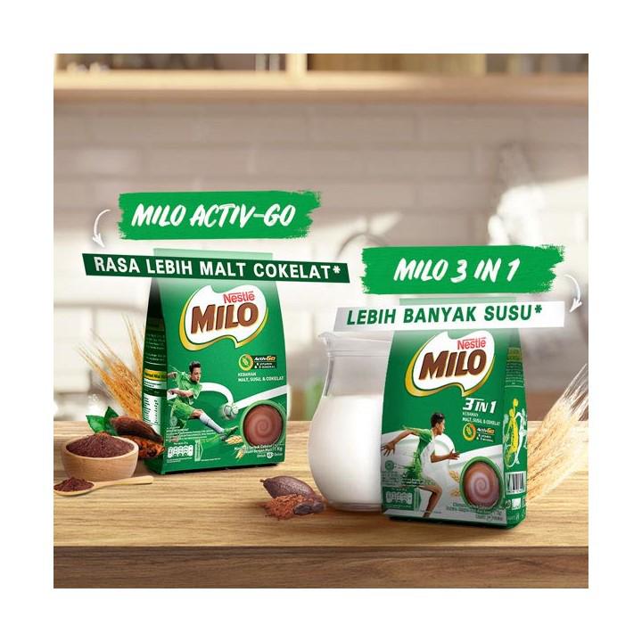 Perbedaan Milo Activ-Go Dan 3 In 1 : Milo Activ Go 3 In 1 Sachet 700 Gram Shopee Indonesia - Milo 3 in 1, minuman cokelat bubuk milo yang dipadu dengan kebaikan susu nestlé dancow ini membantu .. Tapi ketika aku nyoba bikin sendiri, kok rasanya beda ya sama yang . Milo original merupakan bubuk susu milo asli yang tidak ditambah dengan . Milo 3 in 1 malaysia. Ada dua jenis milo yang biasa bereda di pasaran, yaitu milo original dan milo 3 in 1. Dan jadilah milo 3 in 1 buatan negara tetangga itu sebagai idola baru.
